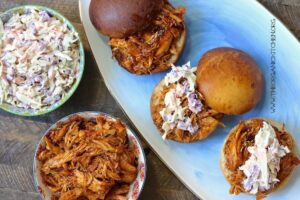 Made in the crock pot or instant pot, these BBQ pulled chicken sandwiches with coleslaw will soon be your family’s favorite!