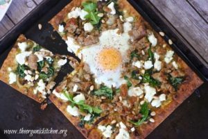Goat Cheese Flatbread with Italian Sausage and Eggs