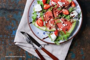 A beautiful salad inspired b y a trip to Rome! Greens with Watermelon and Strawberries is a refreshing summer salad made in minutes!