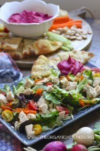 Mediterranean Chicken Salad with Parmesan Flatbread and Hummus