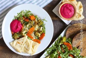 Roasted Carrot and Romanesco Salad with Beet Hummus!