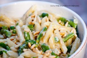 Penne Pasta with Asparagus and Pine Nuts made in under 20 minutes