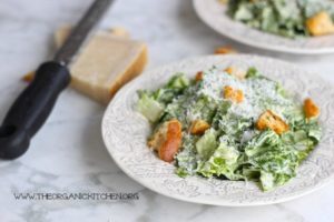 Sometimes I am in the mood for a Traditional Caesar Salad. It’s always a nice option to have on the table. Of course it’s perfect as a side for any Italian main course, but you could also toss in some rotisserie chicken and make it a complete meal. Very versatile! (This post is sponsored by Chosen…