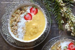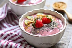 These Strawberry Smoothie Bowls with Chia are an easy to make five minute breakfast!