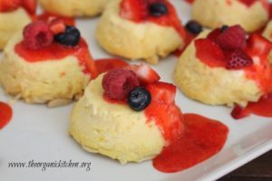 Lemon Vanilla Ricotta Cheesecake with Strawberry Coulis