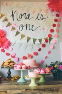 This one…turned one. Yes our little Nora Jane has made her first trip around the sun. So of course a celebration was in order. And since Nora’s mama, Mari, is a stylist, it was a super cute and creative celebration with loads of budget friendly DIY decor. Photography by Lizzyography. There was pink aplenty…