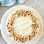 When cakes are completely cool, use a spatula to frost each layer and stack. Sprinkle remaining walnuts around the rim of the cake.