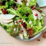 This beautiful Pear and Pomegranate Winter Salad is a snap to pull together and makes a gorgeous addition to your holiday table. The ingredients are simple and the dressing takes two minutes to whisk together. Trust me, it’s fabulous.