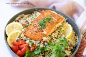 These Salmon Tabbouleh Bowls make a delicious, healthy, fun 30 minute meal. This recipe is loaded with color and flavor, as well as protein, healthy fats and antioxidant rich herbs. It’s so fresh and light, I just love it! (This post contains affiliate links. I may make a commission from sales but your price remains…