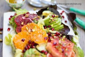 The bright spot of winter produce is most certainly citrus. So fragrant, fresh, light, and of course that beautiful burst of color is always welcome! This is The Organic Kitchen’s Citrus and Avocado Salad with Lemon Poppy Seed Dressing